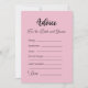 Presentamos "Consejos para la novia y el novio", un emotivo y conmovedor juego de duchas de novias diseñado para ir más allá del mero entretenimiento, proporcionando una plataforma segura y no confrontacional para que la familia, amigos y seres queridos ofrezcan sus valiosos consejos y buenos deseos a la pareja feliz. Emplazado sobre un tranquilo fondo de color rosa cameo, las palabras "Consejos para la novia y el novio" están elegantemente escritas en una letra de escritura negra bonito, creando un aura de elegancia y encanto, convirtiéndolo en una deliciosa adición a cualquier celebración. A diferencia de los juegos tradicionales, "Consejos para la novia y el novio" crea una experiencia duradera y preciada. Mientras la pareja se embarca en su nuevo viaje juntos, pueden recoger y valorar estos sentidos mensajes no solamente durante la ducha de novia o la ducha de boda, sino a lo largo de su vida casada. Con la opción de pedir tarjetas impresas profesionalmente o comprar la versión digital para autoimprimir, este juego ofrece comodidad y personalización, asegurando que se convierta en una parte significativa y a medida de su día especial. Cada tarjeta cuenta con espacios reservados para que los huéspedes compartan sus consejos bajo diferentes epígrafes: "Siempre", "A veces" y "Nunca", ofreciendo una amplia gama de ideas para guiar a la pareja en su viaje de toda la vida juntos. La sección "No olviden" sirve como un recordatorio suave de consejos esenciales, mientras que el espacio "Les deseo a los dos" se convierte en una sincera colección de bendiciones y aspiraciones, simbolizando el amor y la esperanza de todos los presentes. Al final de cada tarjeta, la palabra "amor" espera, invitando a los invitados a firmar sus nombres, añadiendo un toque personal de afecto y apoyo. Estas tarjetas terminadas se convierten en una colección hermosa y sentimental, que captura el amor y la sabiduría que comparten la familia y los amigos, lo que hace de este un tesoro preciado para que la pareja las revisite y aprecie a lo largo de los años. "Consejos para la novia y el Groom" eleva el tradicional juego de la ducha de novias, fomentando una conexión sentida entre la pareja y sus seres queridos. Acepta la alegría de compartir amor y sabiduría con este juego, haciéndolo una parte esencial de tus celebraciones. Que las palabras de tus seres queridos sean una fuente constante de inspiración para la pareja mientras leen y aprecian estos mensajes sentidos, tanto ahora como durante todos los hermosos años que nos esperan.