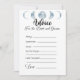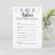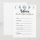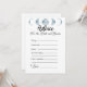 Haga que el día especial de la novia sea aún más memorable con nuestro Minimalista juego de ducha de novias de la Colección Azul Celeste de Fases de la Luna, "Consejos para la novia". Este juego es una actividad sencilla pero sincera que permite a los invitados compartir su sabiduría y sus buenos deseos para la futura novia. El diseño tiene un fondo blanco y limpio que resalta el tema celeste, con las cinco fases de la luna mostradas en un hermoso color azul claro en la parte superior de la carta de juego. El juego incita a los invitados a completar los consejos para la novia en cinco categorías: "Siempre", "A veces", "Nunca", "No te olvides" y "Les deseo a los dos". Esta simple actividad es una forma maravillosa de ofrecer a los invitados sus palabras de sabiduría y ánimo a la novia mientras se embarca en este nuevo capítulo de su vida. Tanto si eres aficionado al cielo nocturno, aficionado a la astronomía, como si simplemente te gusta la belleza de las fases de la luna, este juego es perfecto para añadir un toque personal y reflexivo a tu ducha de novia. El diseño minimalista de esta tarjeta de juegos facilita la coordinación con la decoración de la ducha de novia y otros artículos de temática celeste. Ya sea que estés acogiendo una ducha de novia tradicional o una celebración más moderna, este juego complementará tu tema maravillosamente. Cree recuerdos duraderos y ofrezca un consejo sincero con nuestro juego de ducha de novias de la Colección Azul Celestial de la Luna Minimalista, "Consejos para la Novia".