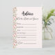 Presentamos nuestro sincero y significativo juego de ducha de novias, "Consejos para la novia y el novio". Esta actividad única y conmovedora va más allá del entretenimiento y proporciona un espacio seguro y sin confrontaciones para que la familia, amigos y seres queridos compartan su sabiduría y sus buenos deseos con la futura pareja. Diseñada con elegancia en mente, cada tarjeta incluye las palabras "Consejos para la novia y el novio" en un hermoso guión negro, añadiendo un toque de sofisticación a cualquier ducha de novia, ducha de boda o evento de boda. La parte izquierda de la carta, con un bonito fondo crema, está adornada con bonitas flores rosadas gruesas y hojas verdes. Estos elementos simbolizan la belleza y el crecimiento que vienen con el amor y el matrimonio, lo que lo hace un lugar perfecto para el emocionante viaje de la pareja juntos. Los huéspedes encontrarán espacios designados bajo los epígrafes "Siempre", "A veces", "Nunca", "No olviden" y "Les deseo a los dos" para dejar constancia de sus sentidos consejos y mejores deseos. La inclusión de la palabra "amor" en la parte inferior de la tarjeta permite a los clientes firmar sus nombres, lo que deja una impresión duradera de su afecto y apoyo a la pareja. "Consejos para la Novia y el Groom" viene con la flexibilidad de imprimirse profesionalmente para una apariencia pulida o convenientemente impresa en casa. A medida que la pareja recoja estos preciados consejos, se les recordará el amor y el cuidado genuinos que compartieron durante su celebración especial, lo que hace que sea un tesoro para ser apreciado a lo largo de los años de su matrimonio. Crear una experiencia inolvidable y significativa para la novia y el novio con "Consejos para la novia y el novio". Este sincero juego fomenta conexiones genuinas y permite a los seres queridos ofrecer su guía de una manera amorosa. La pareja puede reflexionar sobre estas palabras de sabiduría no sólo durante la ducha de novia sino también en los años venideros, haciéndolo parte integral de su hermosa historia de amor. Acepte el poder del amor y haga de este juego una adición sincera a cualquier evento nupcial, ya que se convierte en un apreciado recuerdo del amor y el apoyo de los más cercanos a la pareja.