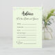 Presentamos "Consejos para la novia y el Groom", un juego de ducha de novias sincero y significativo diseñado para crear una experiencia memorable llena de amor y sabiduría. A diferencia de los juegos tradicionales dirigidos al entretenimiento, esta actividad especial ofrece un espacio seguro y sin confrontaciones para que la familia, amigos y seres queridos ofrezcan sus más sentidos consejos y buenos deseos a la pareja feliz. Mientras se embarcan en su viaje de amor y unión, la novia y el novio pueden recoger estos preciosos mensajes, valorándolos ahora y a lo largo de los años como un bello recuerdo de su día especial. Las elegantes tarjetas incluyen la tierna frase "Consejos para la novia y el novio" en un bonito de escritura negra, añadiendo un toque de sofisticación a cualquier ducha de novia, ducha de boda o evento de boda. El suave fondo verde claro exuda una sensación de tranquilidad y armonía, simbolizando el nuevo comienzo de la pareja lleno de esperanza y felicidad. En la parte superior de cada tarjeta, una hilera de luces colgantes le dan un toque de fantasía, lo que crea el ambiente perfecto para compartir sentidos y conversaciones significativas. Cada tarjeta ofrece espacios para que los huéspedes expresen sus consejos bajo los epígrafes "Siempre", "A veces", "Nunca", "No olviden" y "Les deseo a los dos". Estos reflexivos instantes animan a los huéspedes a compartir sus ideas y sus sentidas bendiciones, creando una preciada colección de palabras de sabiduría que la pareja debe atesorar. Ya sea que optes por la impresión profesional o elijas imprimirla tú mismo, "Consejos para la novia y el Groom" se convierte en un recuerdo preciado que soportará la prueba del tiempo. La pareja puede revisar estos mensajes sentidos cada vez que busca un recordatorio del amor perdurable y el apoyo que los rodea en su viaje como pareja casada. Incorpore "Consejos para la novia y el novio" en su ducha de novias o evento de boda, y presencie la alegría y emoción que surge de compartir en este significativo intercambio de consejos y amor. Este juego es un hermoso testimonio del poder del amor y la importancia de tener un fuerte sistema de apoyo mientras la pareja se embarca en su aventura de toda la vida juntos. Cree un recuerdo preciado y proporcione un espacio seguro para que sus seres queridos ofrezcan su guía y sus buenos deseos con "Consejos para la novia y el novio".