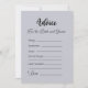 Presentamos "Consejos para la novia y el novio", un juego de duchas novias tierno y sincero que trasciende el mero entretenimiento, proporcionando un espacio seguro y sin confrontaciones para que la familia, amigos y seres queridos ofrezcan sus valiosos consejos y buenos deseos a la pareja feliz. Con un suave fondo gris en la nube, las palabras "Consejos para la novia y el novio" se presentan delicadamente en letras negras de bonito, lo que crea un ambiente de tranquilidad y sofisticación, adecuado para cualquier celebración. A diferencia de los juegos tradicionales, "Consejos para la novia y el novio" crea una experiencia duradera y preciada. Mientras la pareja se embarca en su viaje juntos, pueden recoger y valorar estos sentidos mensajes no solamente durante la ducha de novia o la ducha de boda, sino a lo largo de su vida casada. Ya sea que elija pedir tarjetas impresas profesionalmente o la versión digital para autoimprimir, este juego ofrece comodidad y personalización, lo que lo convierte en un complemento significativo y personalizado de su día especial. Cada tarjeta cuenta con espacios reservados para que los huéspedes compartan sus consejos bajo diferentes epígrafes: "Siempre", "A veces" y "Nunca", lo que proporciona a la pareja una amplia gama de ideas para guiarlos en su viaje de toda la vida juntos. La sección "No olviden" sirve como un recordatorio suave de consejos esenciales, mientras que el espacio "Les deseo a los dos" se convierte en una sincera colección de bendiciones y aspiraciones, simbolizando el amor y la esperanza de todos los presentes. Al final de cada tarjeta, la palabra "amor" espera, invitando a los invitados a firmar sus nombres y dejar un toque personal de afecto y apoyo. Estas tarjetas completas se juntan para formar una hermosa y sentimental colección, capturando el amor y la sabiduría que comparten la familia y amigos, convirtiéndose en un tesoro preciado para que la pareja las revisite y aprecie a lo largo de los años. "Consejos para la novia y el Groom" eleva el típico juego de la ducha de novias, transformándolo en un sincero intercambio de amor y sabiduría. Acepte la alegría de compartir consejos genuinos con este juego, haciéndolo una parte esencial de sus celebraciones. Que las palabras más sentidas de sus seres queridos sean una fuente constante de inspiración para la pareja mientras leen y aprecian estos mensajes, tanto ahora como durante todos los hermosos años que nos esperan.