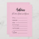 Presentamos "Consejos para la novia y el novio", un juego de ducha sentimental y sentimental que crea un espacio significativo y seguro para que la familia, los amigos y los seres queridos puedan ofrecer sus valiosos consejos y buenos deseos a la futura pareja. Con un suave y delicado fondo rosa pastel, las palabras "Consejos para la novia y el novio" están elegantemente escritas en negro, añadiendo un toque de elegancia y encanto a cualquier celebración. Este juego está pensado para la pareja, proporcionando un sentido recuerdo que pueden apreciar no sólo durante la ducha de novia o la ducha de boda, sino a lo largo de su vida casada. Con la opción de pedir tarjetas impresas profesionalmente para un look pulido y sofisticado o para comprar la versión digital e imprimir tantas copias como sea necesario, "Consejos para la novia y el novio" se puede adaptar a sus preferencias y necesidades, lo que lo convierte en una adición ideal a su día especial. Cada tarjeta incluye espacios para que los huéspedes compartan sus consejos bajo diferentes epígrafes: "Siempre", "A veces" y "Nunca", lo que permite a la pareja recibir una amplia gama de ideas para guiarlos durante su viaje juntos. La sección "No te olvides" sirve de recordatorio de los consejos esenciales que los clientes desean ofrecer, mientras que el espacio "Yo te deseo a los dos" se convierte en un conmovedor conjunto de bendiciones y aspiraciones, lo que significa el amor y la esperanza de todos los presentes. Al final de cada tarjeta, la palabra "amor" espera, invitando a los invitados a firmar sus nombres, dejando un toque personal de afecto y apoyo. Las cartas terminadas se convierten en un bello keepsake, que resume el amor y la sabiduría que comparten la familia y los amigos, convirtiéndose en un tesoro preciado para que la pareja las revise y aprecie a lo largo de los años. "Consejos para la novia y el Groom" va más allá de un simple juego de ducha de novias, fomentando una conexión sentida entre la pareja y sus seres queridos. Acepta la alegría de compartir amor y sabiduría con este juego, haciéndolo una parte esencial de tus celebraciones. Que las palabras de sus seres queridos sean una fuente de inspiración para la pareja, ya que leen y aprecian estos mensajes sentidos, tanto ahora como en los años venideros.