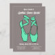 El diseño es clásico y sencillo, con zapatillas de ballet puntiagudas en verde suave de menta con un fondo de taupe de cortesía. Todo el texto puede ser personalizado a su gusto.