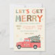 Sorteo mano, Vamos a meternos con esta divertida, moderna y divertida fiesta navideña de los Navidades con un camión de tono rojo y rosa decorado con un árbol de navidad con adornos y divertidos copos de nieve. ¡Ideal para un Fiesta de Navidades de vacaciones, cumpleaños, suéter feo, fiesta de oficina, fiesta de cócteles de cualquier evento de vacaciones!