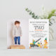 Invitación a la fotografía de la construcción del segundo cumpleaños, con lindos dinosaurios operando los camiones de construcción, está listo para ser personalizado por usted. Añade tu propia foto y edita el texto usando la plantilla! Planea un fiesta para recordar a tu pequeño.