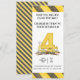 This cheerful kids yellow construction truck birthday party design was created especially for a four year old who loves big machines and busy building scenes. Inspired by roadwork and construction sites, the modern illustration uses bright yellow tones, trucks, and playful details to spark excitement. It’s perfect for celebrating a four year old’s big day with imagination, fun, and a love for construction.