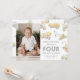 Foreman of Four! Watercolor Construction Vehicle 4th Birthday Photo Invitation