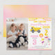 With soft watercolor details, colorful stars, and a bold split layout for easy personalization, this invite is ideal for a construction unicorn birthday, sibling joint party, trucks and magical theme, girly construction party, editable kids birthday invitation, and a pink and yellow birthday celebration.