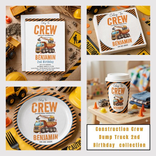 Invitación Construction Crew Dump Truck Boy 2nd Birthday