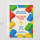 Celebre el día especial de su hijo con una invitación de cumpleaños temática de ladrillos de juguete brillante y alegre. Perfecta para pequeños creadores y constructores, esta invitación editable presenta ladrillos coloridos, tipografía juguetona y mucho espacio para personalizar con los detalles de su fiesta.