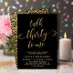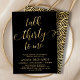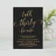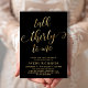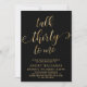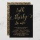 Moda Elegante Conversación 30 para mí Script 30th Birthday Invitation in Black and Gold. Esta plantilla moderna para invitaciones a fiestas de cumpleaños incluye un elegante texto de "Talk Thirty To Me" en un falso guión de caligrafía (o tipografía) de Relieve metalizado dorado escrito a mano con cruz de batido, detalles de fiesta en color oro sobre fondo negro. En el lado inverso se falsifica el patrón de círculo de ondas giratorias en Relieve metalizado dorado sobre fondo de color negro. Perfecto para celebrar los 30º cumpleaños con estilo, esta invitación agrega un toque de glamour a cualquier fiesta, tanto para hombres como para mujeres.