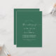 Esta moderna acuarela coordina la invitación a una boda verde es perfecta para un boda contemporáneo y elegante. El sencillo diseño verde esmeralda y blanco presenta una tipografía industrial única con un estilo boho moderno. Personalizable de cualquier color. Mantenga el diseño minimalista y elegante, tal como está, o lo personalice añadiendo sus propios gráficos y obras de arte.