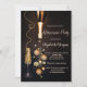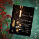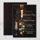 Elegante botella de champán y copa con decoración navideña sobre fondo oscuro.