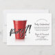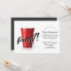 Cuenta con una clásica copa roja con las palabras "¿fiesta?" encima. Debajo hay un espacio para tu información única.