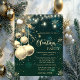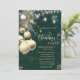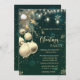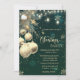 Elegantes bolas de Navidad, luces de cuerdas y estrellas sobre fondo verde. Estas hermosas invitaciones a Navidades son perfectas para Navidades que invitan a cenar, invitaciones de intercambio de regalos de vacaciones, recaudaciones de fondos para Navidades, invitaciones para fiestas de vacaciones y otros eventos que se llevan a cabo durante el mes de diciembre. Utilice los campos de plantilla para agregar su propia información de eventos.