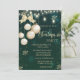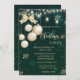 Elegantes bolas de Navidad, copo de nieve, arco y luces de cuerda sobre fondo verde. Estas hermosas invitaciones a Navidades son perfectas para Navidades que invitan a cenar, invitaciones de intercambio de regalos de vacaciones, recaudaciones de fondos para Navidades, invitaciones para fiestas de vacaciones y otros eventos que se llevan a cabo durante el mes de diciembre. Utilice los campos de plantilla para agregar su propia información de eventos.