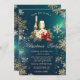 Una elegante invitación de fiesta de vacaciones con copos de nieve dorados, poinsettia y vino de fondo verde. Estas hermosas invitaciones a Navidades son perfectas para Navidades que invitan a cenar, invitaciones de intercambio de regalos de vacaciones, recaudaciones de fondos para Navidades, invitaciones para fiestas de vacaciones y otros eventos que se llevan a cabo durante el mes de diciembre. Utilice los campos de plantilla para agregar su propia información de eventos.