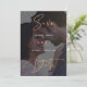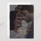 Este moderno ahorro de la fecha presenta caligrafía de cobre y un aspecto falso de terciopelo. En la parte delantera de la tarjeta, "Save our Date" (Guardar nuestra fecha) está escrito en escritura de cobre a través de una foto completa. Los nombres de la pareja, la fecha del boda y la ubicación del boda están escritos en blanco. El falso vello permite que el texto superpuesto se destaque sobre la foto vertical. En la parte posterior de guardar la fecha, añada otra foto y detalles del boda como el sitio web del boda.