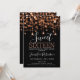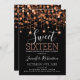 Elegante plantilla de invitación de Copper & Black Sweet 16 Birthday Party Sparkly String Lights.