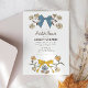 Tarjeta de modelo de invitación a la ducha de matrimonio rústica y de cuqueta con ilustracion de arcos y flores de color azul y amarillo dibujado a mano.