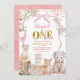 Invitación de primer cumpleaños Coqueta rubor rosa animales del bosque de primavera