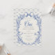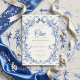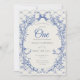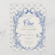 Esta imagen es una invitación de cumpleaños de estilo vintage muy bien hecha, con elegantes ilustraciones florales a mano y con un suave azul sobre un fondo crema. El marco central es una guirnalda oval ornamentada de flores y hojas silvestres, coronada y con un fondo de arcos encantadores, que le confieren al diseño una estética delicada y clásica que recuerda a la antigua papelería francesa o a los patrones de toile. Lo que lo hace realmente especial es la mezcla de elegancia vintage y calidez sentimental. Es más que solamente una invitación —marca la pauta para una celebración cuidadosamente planeada, insinuando fiestas de té, pastas suaves, vestidos de heredero y sinceros recuerdos en proceso.