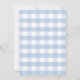 Esta invitación a la ducha de bebé de este coqueta y niño lindo tiene una gran proa/cinta azul dibujada a mano. En el reverso, el fondo es blanco con chapas y cheques de gingham azules. Personalízalo para tus necesidades. Puedes encontrar productos coincidentes en mi tienda.
