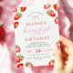 Celebra tu día especial con esta encantadora invitación al arco de coqueta con el lema "Berry First Birthday". Con un delicioso tema de fresa, un guión rojo elegante y acentos acuáticos suaves, esta invitación es perfecta para una celebración de cumpleaños de primavera o verano.