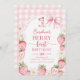 Coquette Bow Strawberry Berry Primera Invitación a Cumpleaños