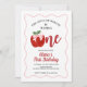 Apple Coquette Primer cumpleaños con arco rosado y gingham rosa.