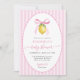 Celebrate the upcoming arrival of your little one with this adorable coquette lemon baby shower invitation. Featuring a charming pink striped background and a sweet watercolor lemon with a pink bow, this design is perfect for a spring or summer baby shower. The elegant script font adds a touch of sophistication, while the playful lemon motif brings a cheerful vibe. This invitation is sure to set a delightful tone for your special celebration and impress your guests with its unique and charming design. Announce your joyous event with this beautifully crafted, squeeze-the-day themed invitation.