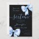 Invitación Coquette Navy Blue Bow Sweet 16 Cumpleaños Negro