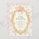 Invitación Coquette Ornate Frame Pink Bow Toile Cumpleaños
