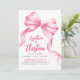 Invitación de cumpleaños de Bow Rosado — para cualquier celebración, desde la primera hasta la decimosexta, de trece a treinta y cinco. Diversión como una risita, dulce como una ilusión diurna, esta invitación brilla con alegría y encanto. Una cinta acuarela se desliza a través de la tarjeta, curvándose en el arco rosado más juguetón. Diseñado con amor (y un toque de coqueta), combina simplicidad con un toque de fantasía. Ya sea un fiesta de té a la luz de las velas, un jardín que brilla en rosa, o una moda moderna -esta invitación marca el tono perfecto para un día lleno de risas, amor y magia. Bonita ventaja: cada palabra y los colores de ambos lados pueden cambiarse al deseo de tu corazón, para que tu invitación pueda brillar en tu paleta de sombra favorita.
