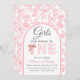 Invitación Coquette Pink Bow Toile Chica Primer Cumpleaños