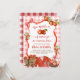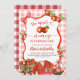Invitación Coquette Red Plaid Bow Apple primer cumpleaños