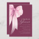 Invitación a la ducha con colcha rosa de Coquette Bow Bridal Esta impresionante invitación a la ducha con una novia rosa es elegante y de moda. El fondo rosa oscuro y el hermoso arco son la definición de elegancia.