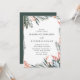 Invite a sus huéspedes a su boda tropical con estilo con nuestra invitación a la boda de Watercolor Coral y Green Tropical Leaves. La invitación a la boda tropical muestra sus nombres y detalles bodas enmarcados por hojas tropicales de coral y color verde agua. La invitación vuelve a un fondo verde oscuro sólido. La invitación es perfecta para bodas tropicales, de playa y de jardín.