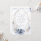 La elegante invitación a la ducha de novia bajo la temática del mar incluye una polvorienta acuarela azul coral y conchas marinas, escritura elegante y detalles elegantes del tipo de letra del evento, moderno y romántico, ideal para bodas en la playa de verano con temática marina, boda de destino tropical de invierno, boda con temática oceánica costera. Vea todas las piezas coincidentes de la colección.