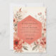 A warm, inviting design featuring a palette of coral and muted greens. Delicate floral elements and foliage create a charming, rustic atmosphere. Perfect for an autumnal or rustic-themed matrimonial event.