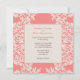 Estas invitaciones a la boda moderna de Coral Fleur de Lis presentan un patrón estilo Damasco Fleur de Lis en papel blanco sobre un fondo de coral. Agregue su información utilizando la plantilla. Haga clic en "personalizar" para realizar cambios en la ubicación de la fuente y el texto.