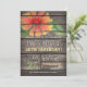 Invitación de la fiesta de cumpleaños con naranja de coral, rojo, amarillo, flor verde, diseño floral en el rústico y vintage campo occidental, madera de pino, fondo de madera impreso con elegantes fuentes de estilo antiguo. Perfecto para el campo, la casa de campo, la granja, el tema de los astilleros adultos Fiestas de cumpleaños! ¡Esta tierna y divertida invitación es genial durante todo el año para la celebración de cumpleaños primavera, verano, otoño o invierno! Invitación rústica de cumpleaños para cualquier adulto o adolescente, incluyendo Sweet 16, dieciséis, 18th, 21st, 30th, 40th, 50th, 60th, 70th, 75th, 80th, 85th, 90th, 95, 100th.