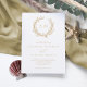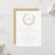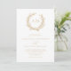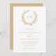 Perfecto para bodas de playa y náuticos, una corona de coral enmarca las iniciales de los monogramas de la novia y del novio en la cima de esta elegante invitación minimalista a la costa blanca y beige. La parte posterior es de un color beige sólido.