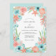 This whimsical design features a vibrant underwater scene rendered in soft watercolors. A delicate palette of coral, peach, and turquoise brings to life a breezy coastal atmosphere. The arrangement includes hand-painted starfish, scalloped seashells, and delicate coral branches intertwined with blooming anemones and roses. It is an ethereal choice for an aquatic themed event.