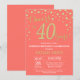 Invitación Coral y oro sorprenden 40 cumpleaños Diamante