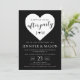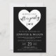 Invitación de fiesta elegante negro blanco simple moderno minimalista corazón de amor feliz para siempre.