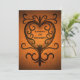 Un bonito corazón negro y giratorio sobre un fondo naranja decora estas preciosas invitaciones nupciales. Personalízalos con tu propio texto.