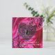 Elegante, caprichoso, corazón de encaje negro fresco, fantasía floral, ropa de satén rosa brillante vibrante y florecientes púrpura, rojo, violeta brillantes.
