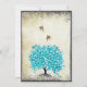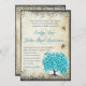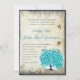 Invitaciones de boda con hoja de corazón azul turquesa y verde menta Árbol caprichoso con aves de amor vintage en pergamino de perla falso con bordes quemados. Perfecto para el tema de boda de Renacimiento Medieval Lovebird, Rustic Cottage Chic Farmhouse Barn Venue o temas de boda Folksy Woodsy Woodland Forest Grove.
