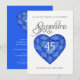 Bonita invitación de boda acuarela azul zafiro corazón piedra 45 en azul y blanco. Personalice con los detalles de su fiesta o evento de aniversario de bodas de zafiro cuarenta y cinco. Otros artículos coincidentes están disponibles. Arte y diseño original de acuarela de Sarah Trett para www.mylittleedenwedings.com y www.mylittleeden.com en Zazzle.